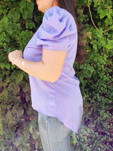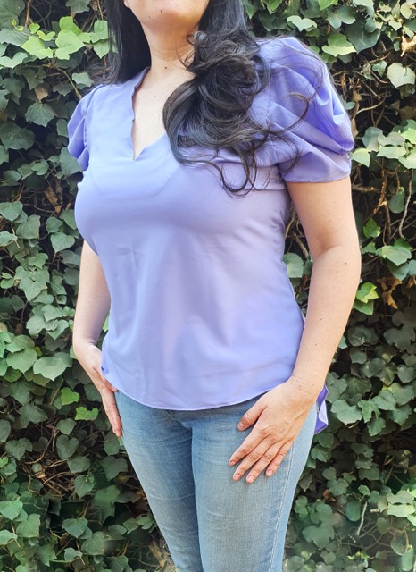 Blusa manga corta con pligues en hombro, cuello en V, con cola en epalda. Compiosicpon: 95% poliester 5% elastano Instrucciones de lavado: Lavar con agua fr{ia, jab{on neutro, lavar a maquina, no blanqeuador, no expirmir, plancha tibia.