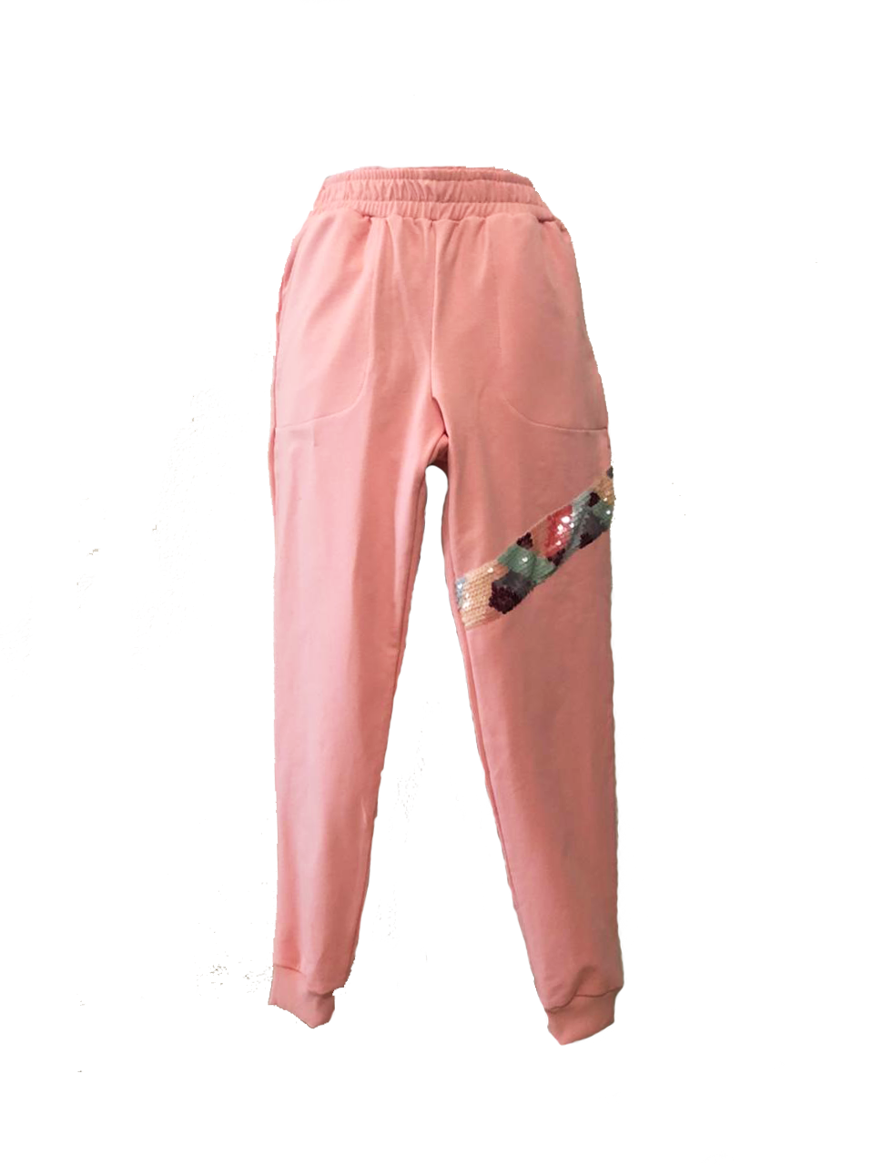 Jogger de cintura alta y aplicación de lentejuela en pierna izquierda